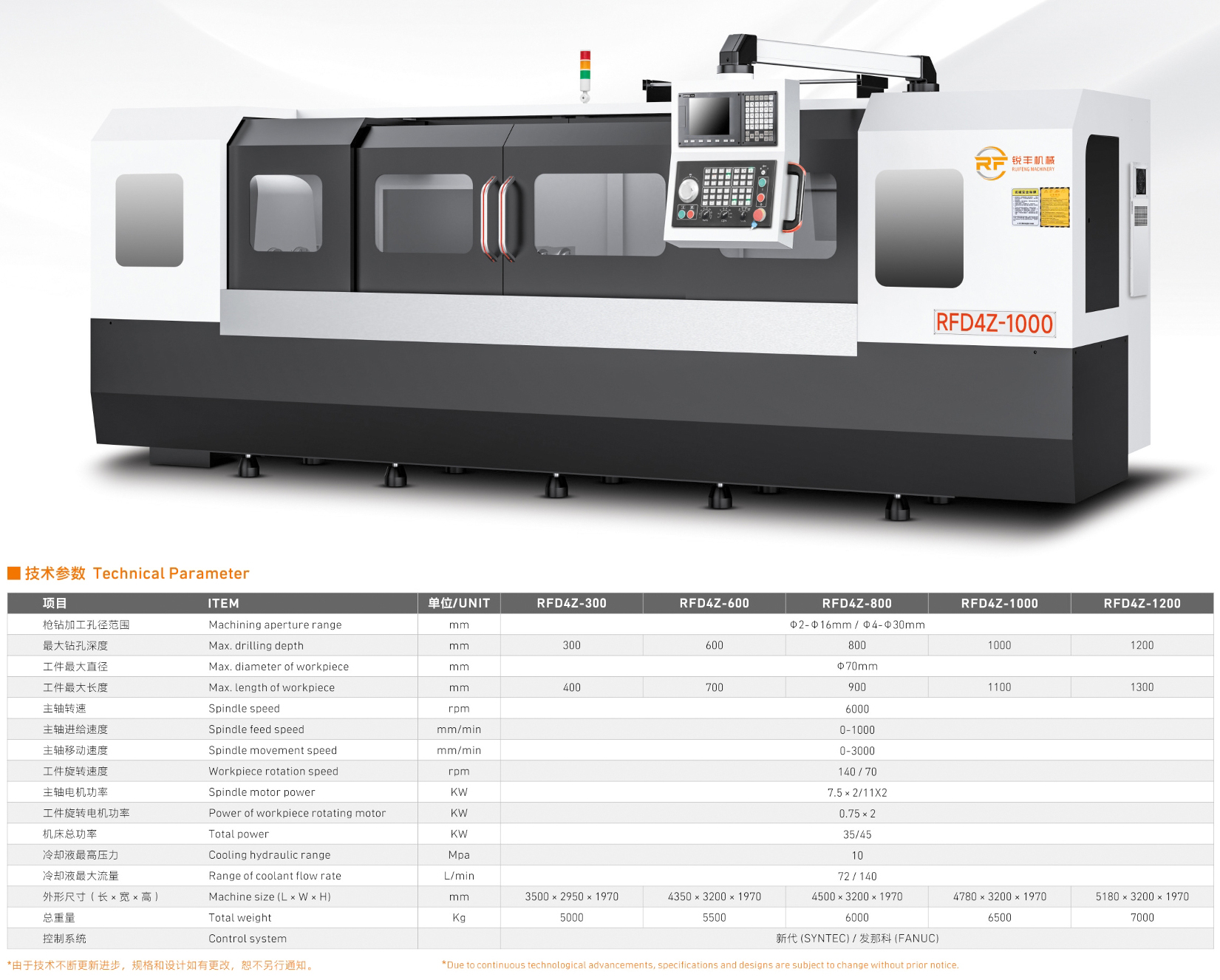 | RFD4Z 四主轴系列深孔钻 RFD4Z 4-SPINDLE SERIES DEEP HOLE DRILING | |||||
